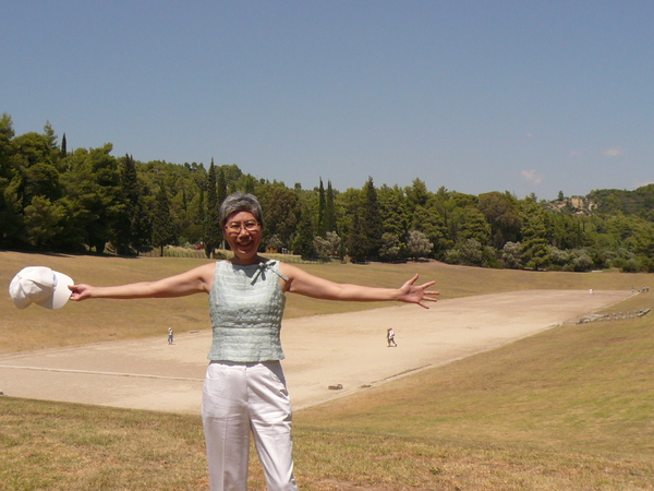 前幾天我們因為大姐朋友的婚禮而順路過去奧林匹亞 (Olmpia),那裡是傳說中的古代奧林匹克運動會遺跡,我們進去裡面參觀,裡面有很多神廟,一點帶給人「運動場」的感覺都沒有。直到了我們進入主運動場,裡面就和上圖一樣寬闊。