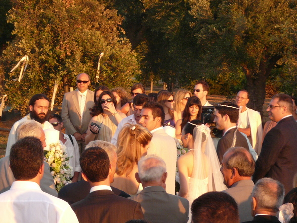 當天晚上我們去參加了正港的希臘婚禮,是正統的東正教主持的婚禮,聽說是要雙方都信才可以在教堂舉行的。剛開始悠閒的站在...他們私人家裡,是的!是在他們自家庭院的婚禮。 (真有錢阿~)